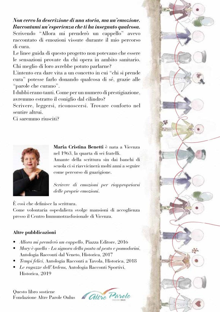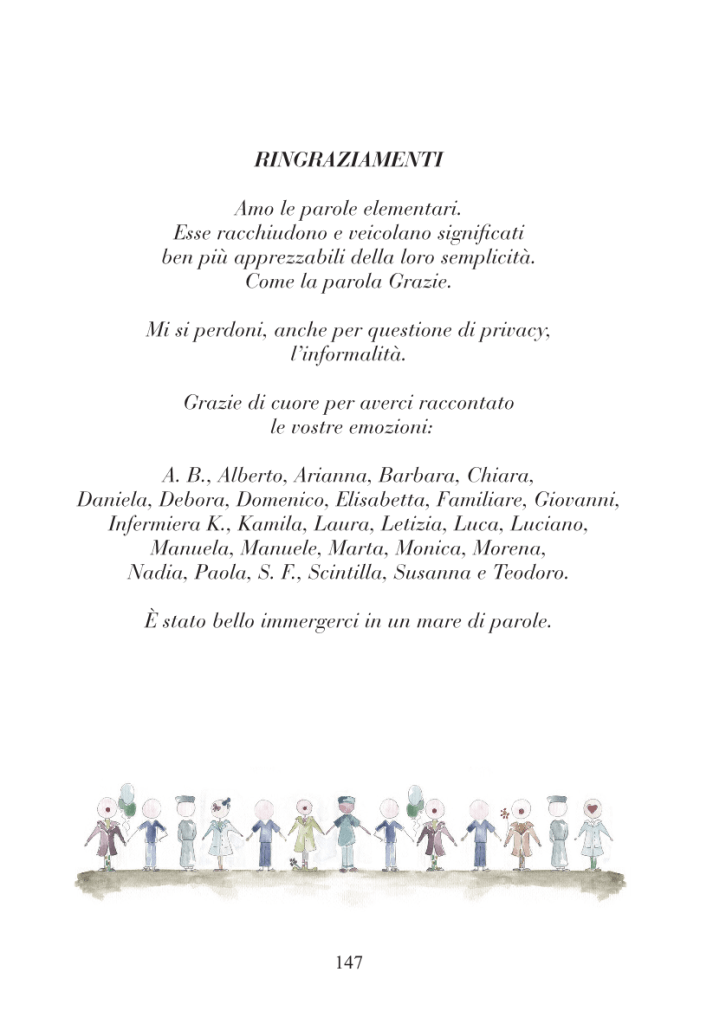 In questo libro al contrario – in cui prefazione e antefatto sono scritti da una paziente e un familiare – professionisti del mondo sanitario e non, rivelano e condividono le loro percezioni. Una sorta di diario a cui affidare le emozioni più intime, che passando di mano in mano, tracci il percorso verso una meta a cui tutti possiamo ambire.